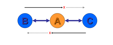 This proposition is best illustrated by example. Suppose a provider A peers with provider B at one location and provider C at a different location (Figure 1) . Provider A will learn both B's routes and C's routes. What routes should provider A announce to each of B and C? In particular, should A announce B's routes to C, and C's routes to B? In both cases the answer is no. Neither B or C are paying A for the peering connections, so the costs associated with the transit across A are unfunded.