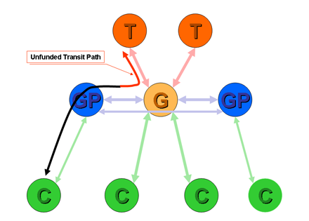 The third proposition is that in a stable set of inter-provider relationships no provider permits transit traffic without some identifiable funding source.