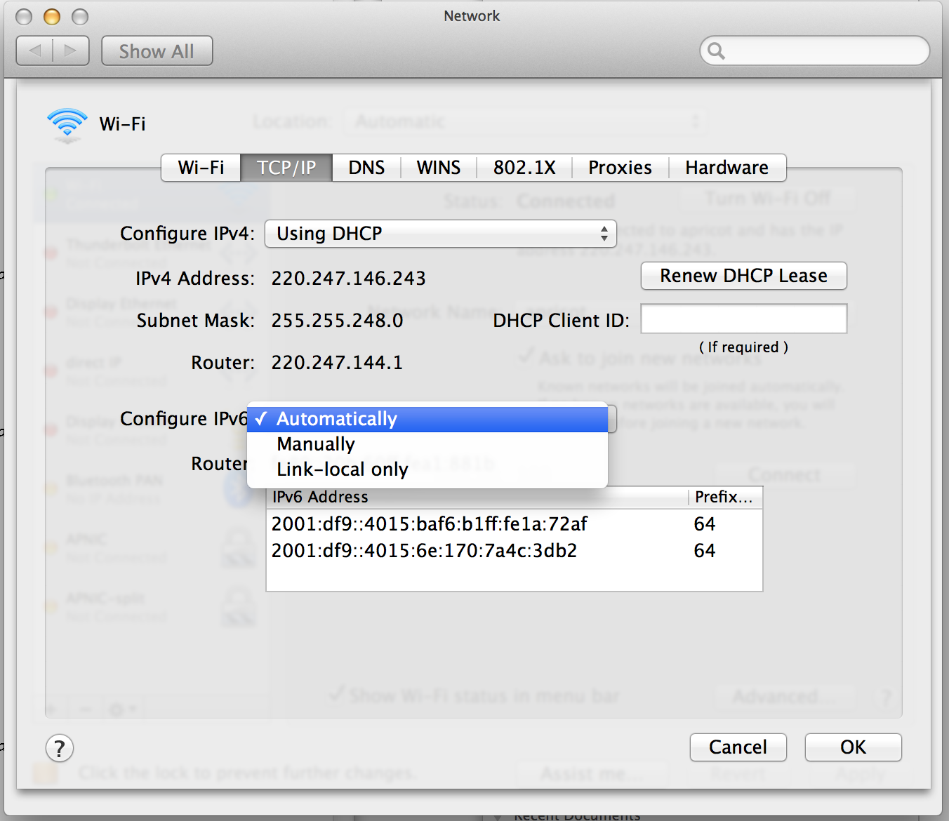 # networksetup -setv6off Wi-Fi