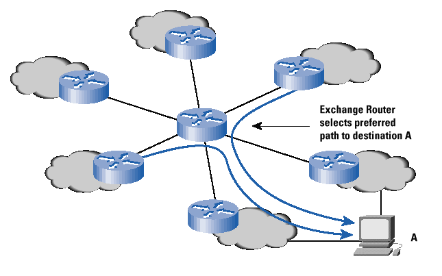 However, the exchange router model becomes an active component of the interconnect peering policy environment. In effect, each provider must execute a multilateral interconnection peering with all of the other connected providers. Selectively interconnecting with a subset of the providers present at such a router based exchange is not easily achieved. In addition, this type of exchange must execute its own routing policy. When two or more providers are advertising a route to the same destination, the exchange router must execute a policy decision as to which provider's route is loaded in the router's forwarding table, making a policy choice of transit provider on behalf of all other exchange connected providers.