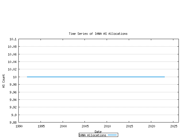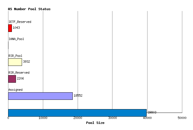 Following an IETF standards action in November 2006, the Internet Assigned Numbers Authority (IANA) has extended the AS Number field to 32 bits in size, increasing the pool size from 65536 to 4,294,967,296 values. As of January 2007 32 bit AS numbers are available for assignment from the Regional Internet Number Registries (RIRs). A similar report, looking at the allocation state of the entire 32-bit AS number pool can be found here.