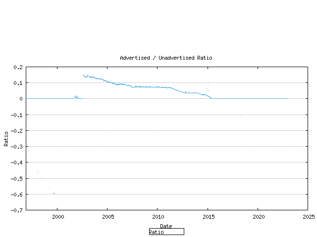 The ratio of unadvertised to advertised AS numbers can be plotted over time.