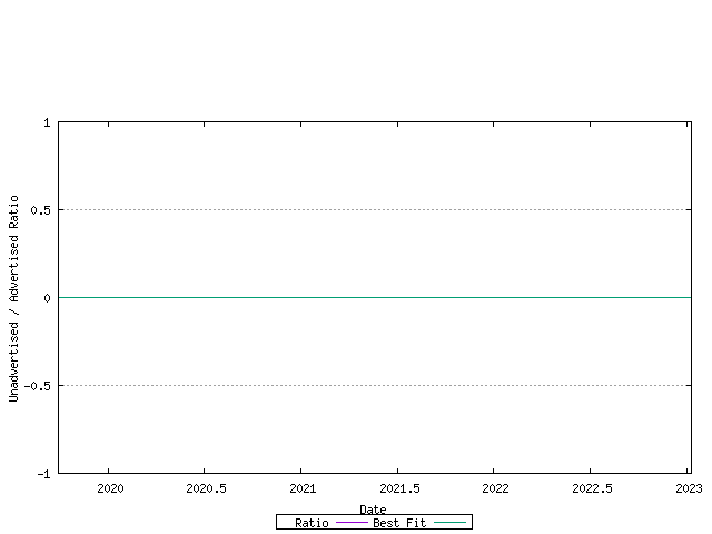 The first series is the projection of the unadvertised AS count / advertised AS count ratio. This is shown in the following figure, with a linear best fit superimposed on the measured data.